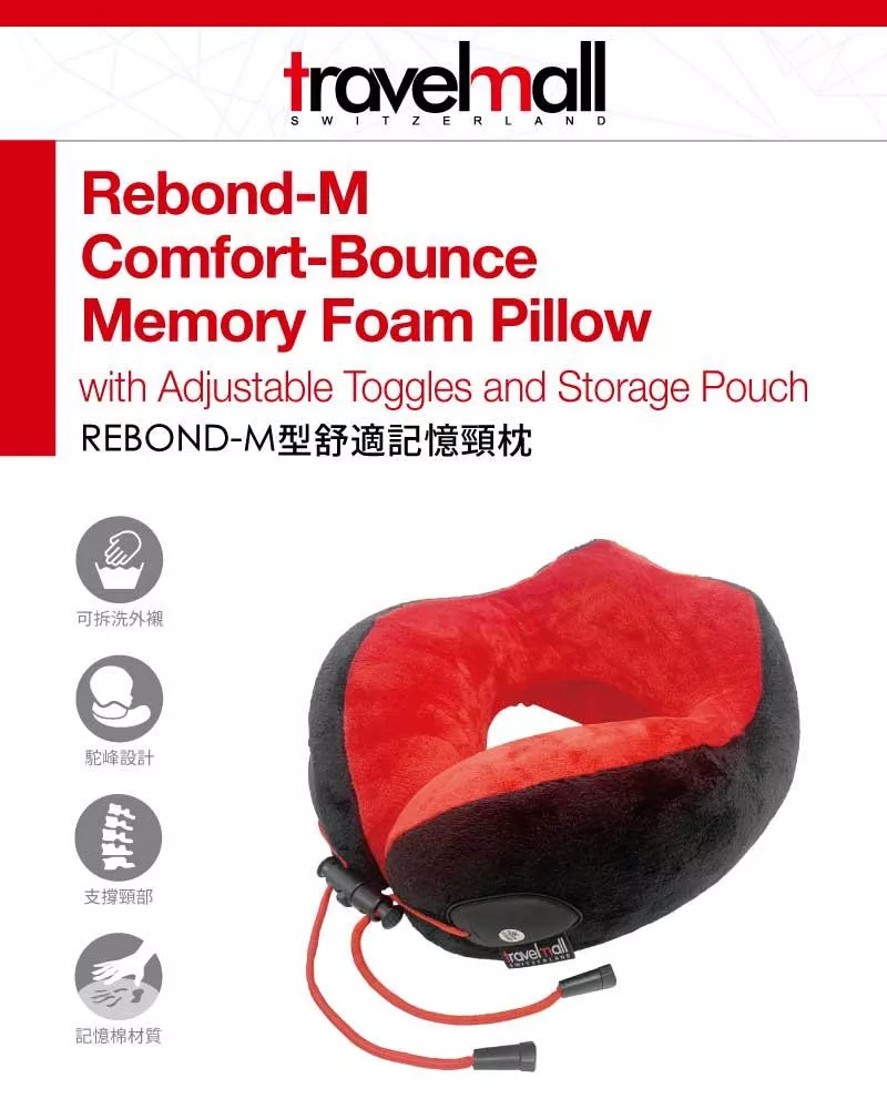 Travelmall REBOND-M型舒適記憶頸枕-紅