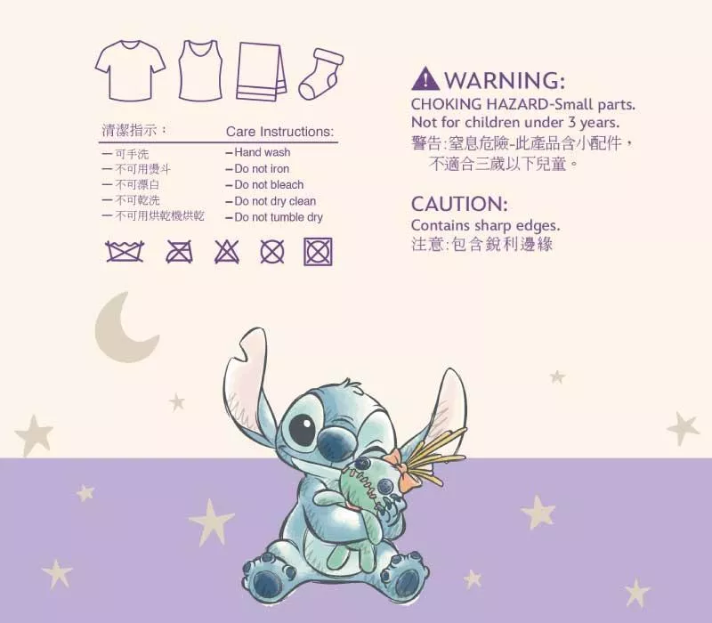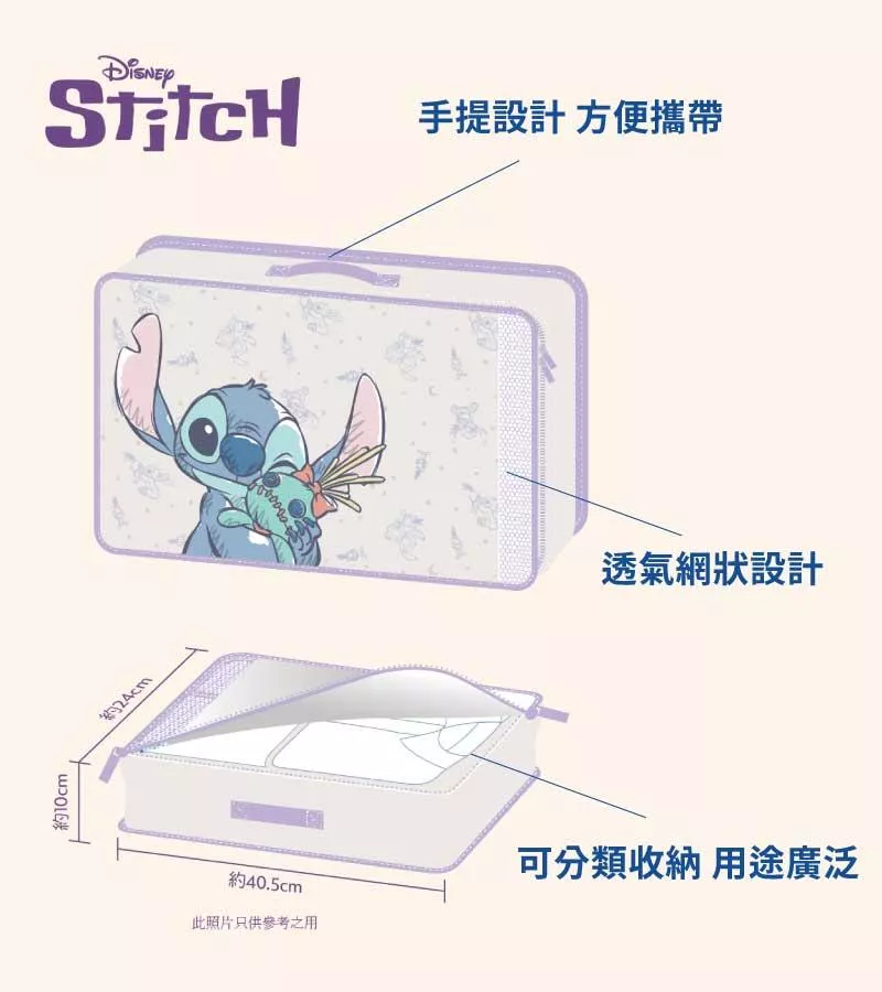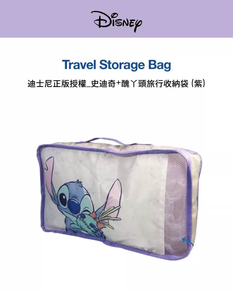 EverWin 迪士尼正版授權_史迪奇+醜ㄚ頭旅行收納袋 (紫) S