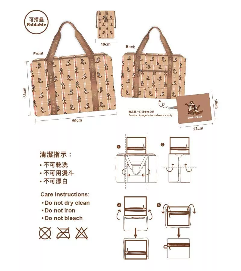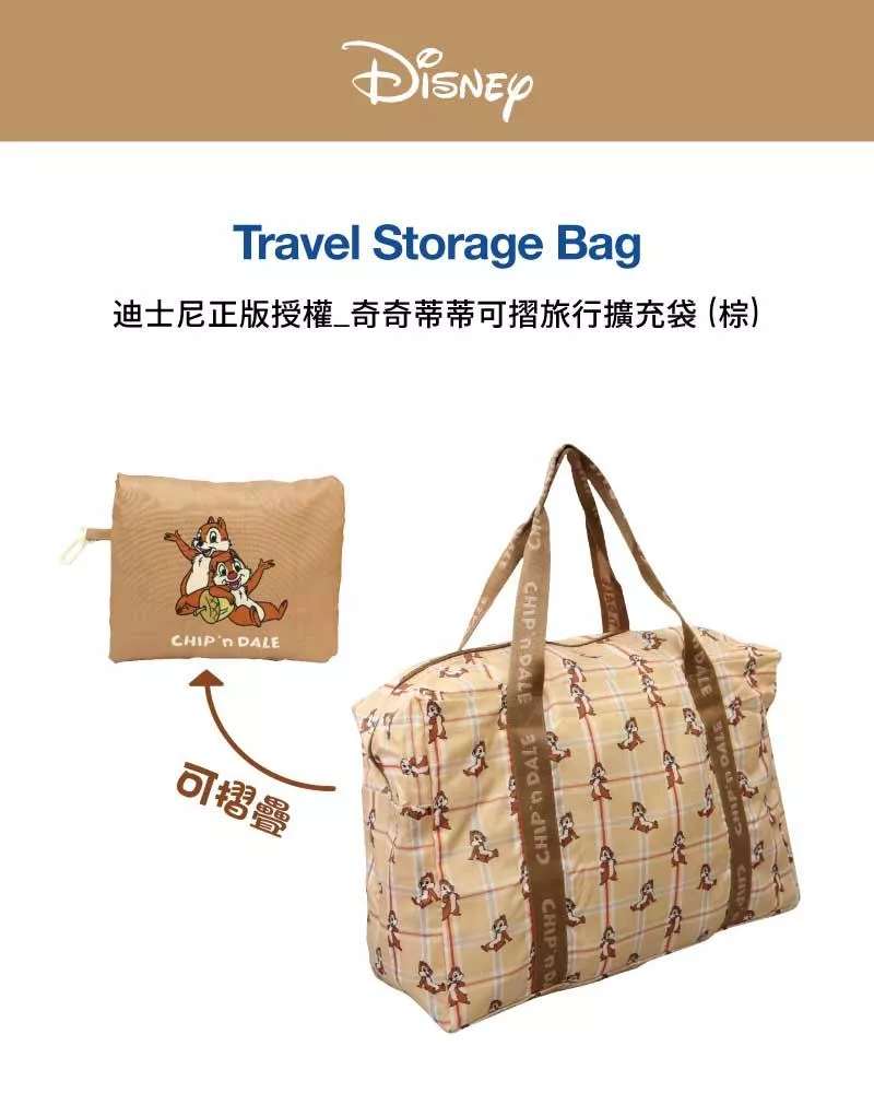 EverWin 迪士尼正版授權_Disney_奇奇蒂蒂可摺旅行擴充袋 (棕)