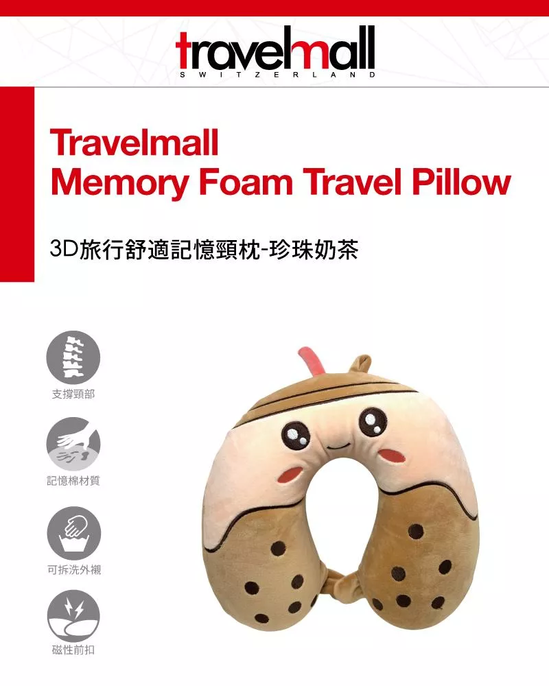 Travelmall 旅行舒適記憶頸枕-珍珠奶茶